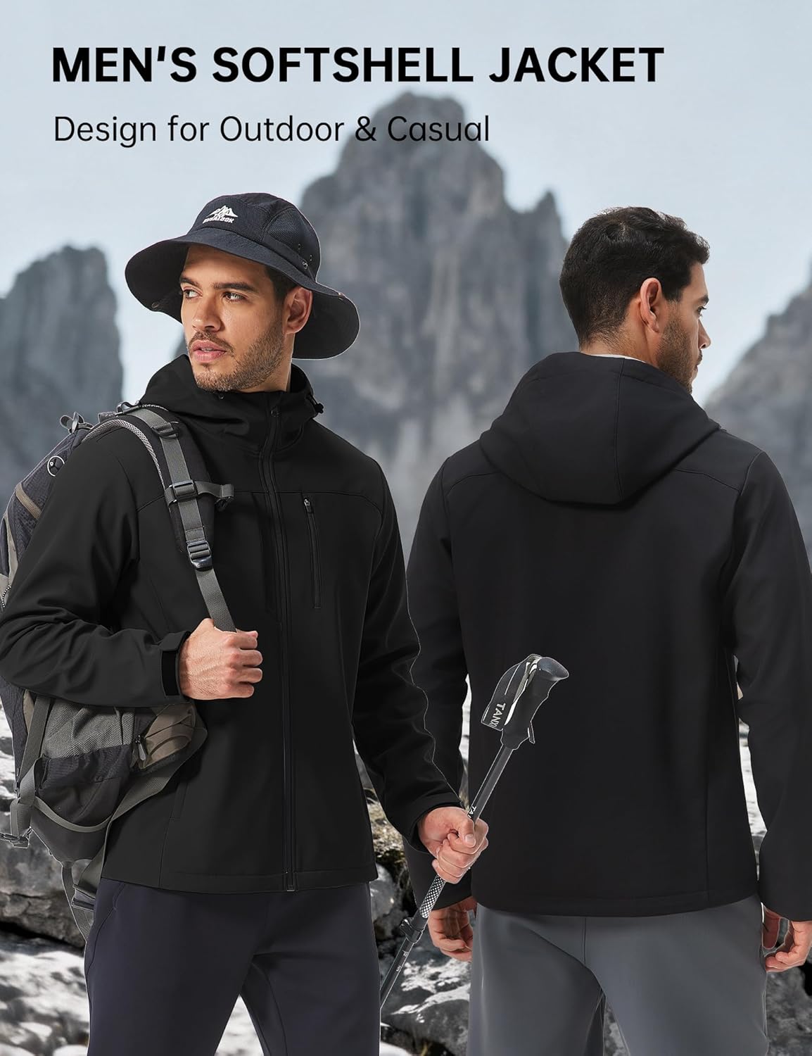The softshell jacket men is designed with water-resistant and windproof fabric provides you with the ultimate comfort. Besides, the 6 Pockets will free your hand, Also, the adjustable hood and Velcro Cuffs will better lock in the cold wind, making you feel warm in fall and winter.
